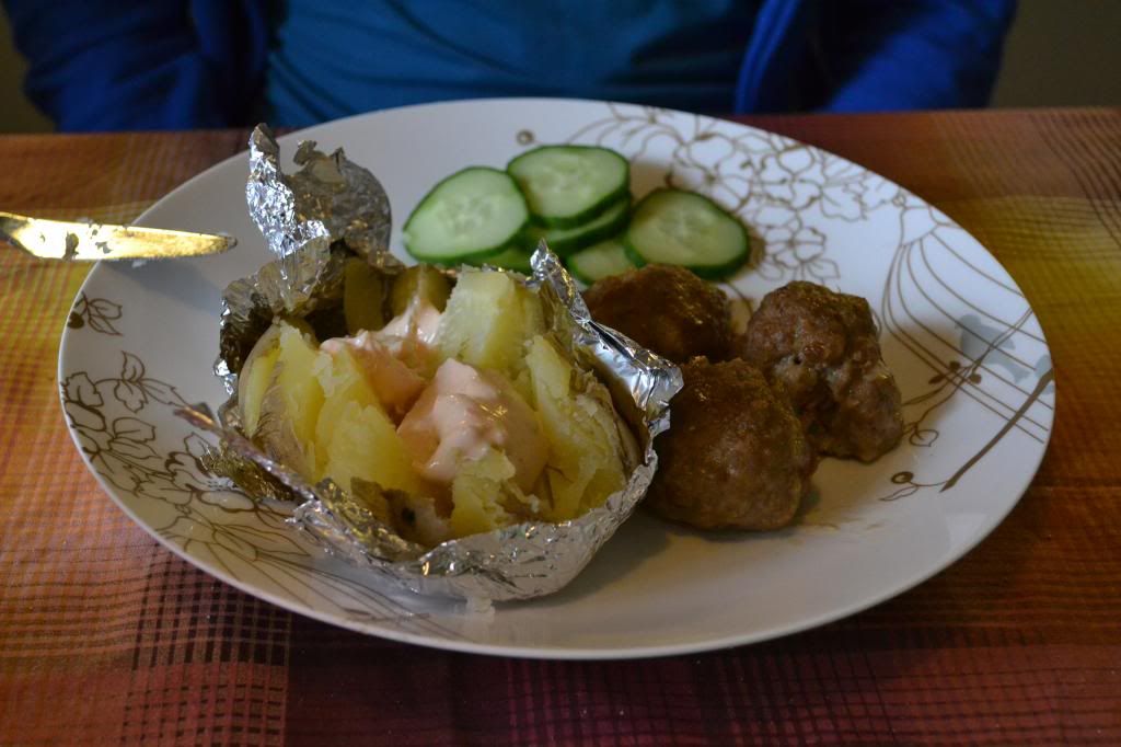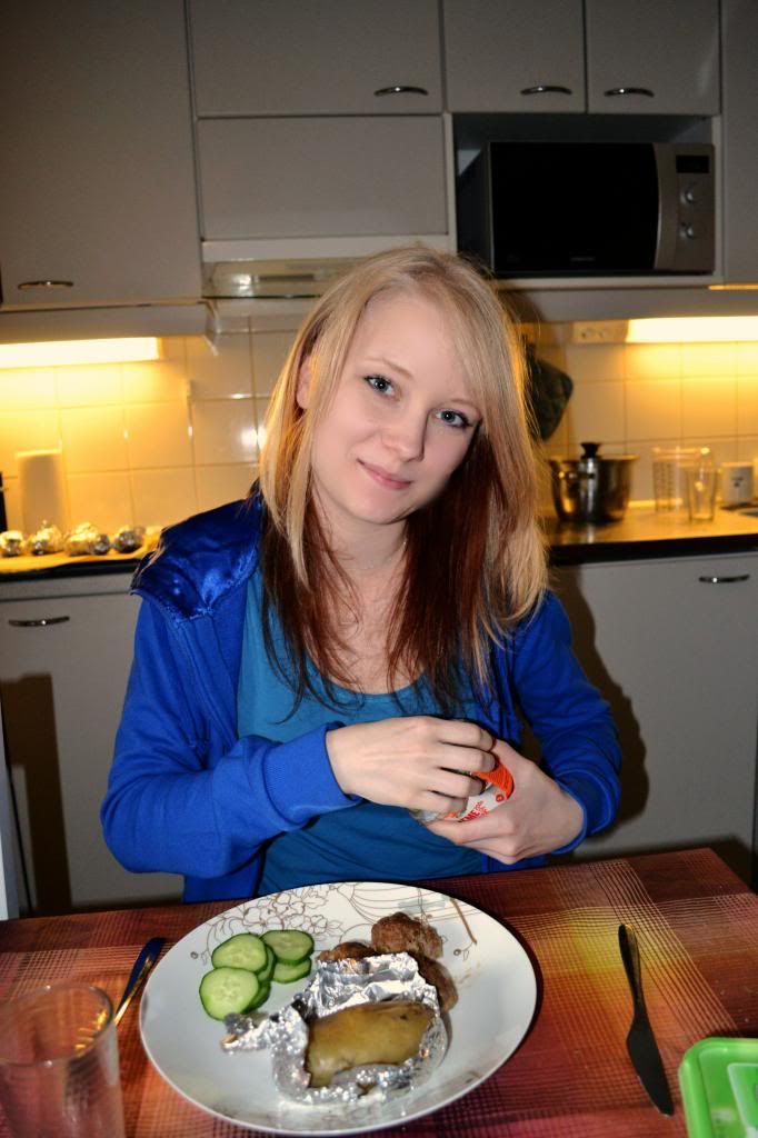 Tänään halusin olla maailman paras ja kaikista ihanin tyttöystävä, ja pyöräilin Eelille laittamaan ruokaa. Reilun viikon ajan se on ahertanut yhden ja saman esseen kimpussa, ja ajattelin vähän tsempata loppurutistusta varten nyt kun aurinkokin on mennyt piiloon. Listalla oli tänään uuniperunoita chili-paprika-täytteellä ja lihapullia, sekä jälkkäriksi suklaamoussea. Voin olla ylpeä omasta miehestäni, kun kuulemma ensimmäistä kertaa teki lihapullia ja silti niistä tuli pyörempiä kuin mun tekemistä, haha. En tosiaankaan ole mikään kodin hengetär, joten lihapullat teen aina ranskalaiseen sipulikeittoon ja suklaamoussekin tuli suoraan pussista, lisää vain maito! Vatsat täynnä katsottiin Lostin viimeinen jakso ja syötiin isot kupilliset jälkiruokaa, vaikka meinasi vähän tökkiä.. Lostin päätösjakso oli yhtä hämärä kuin edelliselläkin kerralla, seuraavalla kerralla uusi sarja pyörimään sitten!